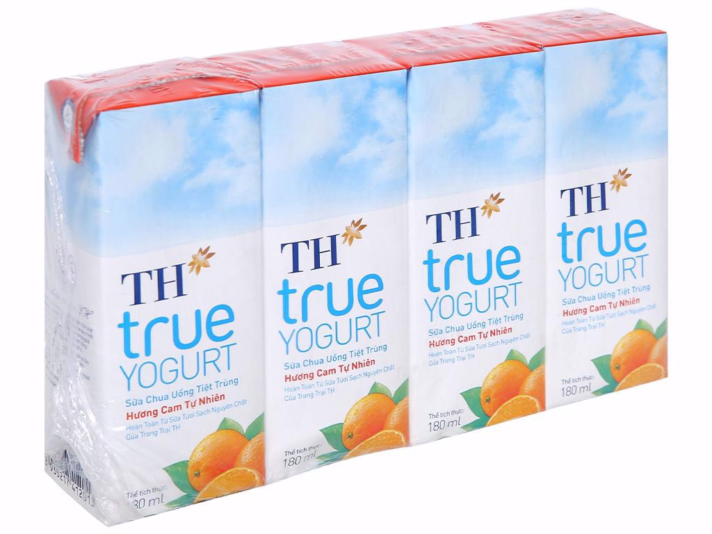 Lốc 4 hộp sữa chua uống TH Milk hương cam 180ml